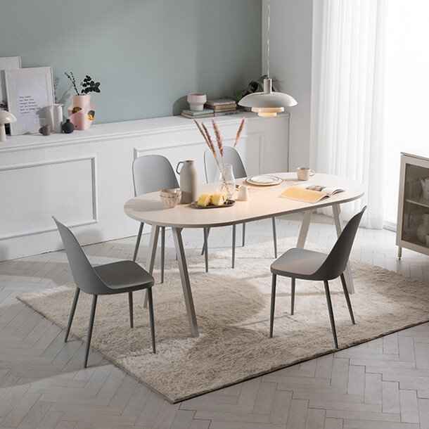 [아울렛] 로티르 6인 원형 화이트상판 식탁세트 의자4
