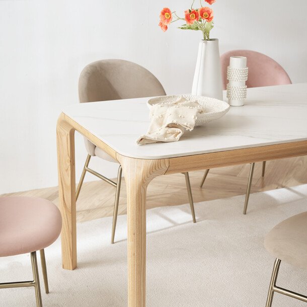 레티식탁은 북미산 천연 애쉬원목을 사용하여 특유의 나뭇결과 우드의 따스한 감성을 지녔습니다. 마이스터랩의 원목가공 기술력과 리바트만의 오랜 세라믹 노하우로 완성도 높은 원목세라믹 식탁을 자신있게 선보입니다. 보이지 않는 곳까지 구조와 디테일을 챙기고 우아한 디자인을 자랑하는 레티로 우리 집 감성 무드를 연출해보세요.