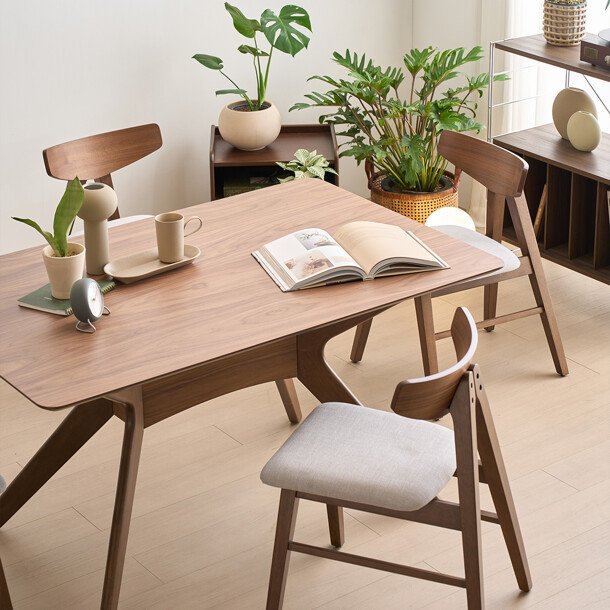차분함이 느껴지는 월넛 컬러의 불란파루 식탁의자와 함께 통일감 있는 공간을 연출해 보세요.