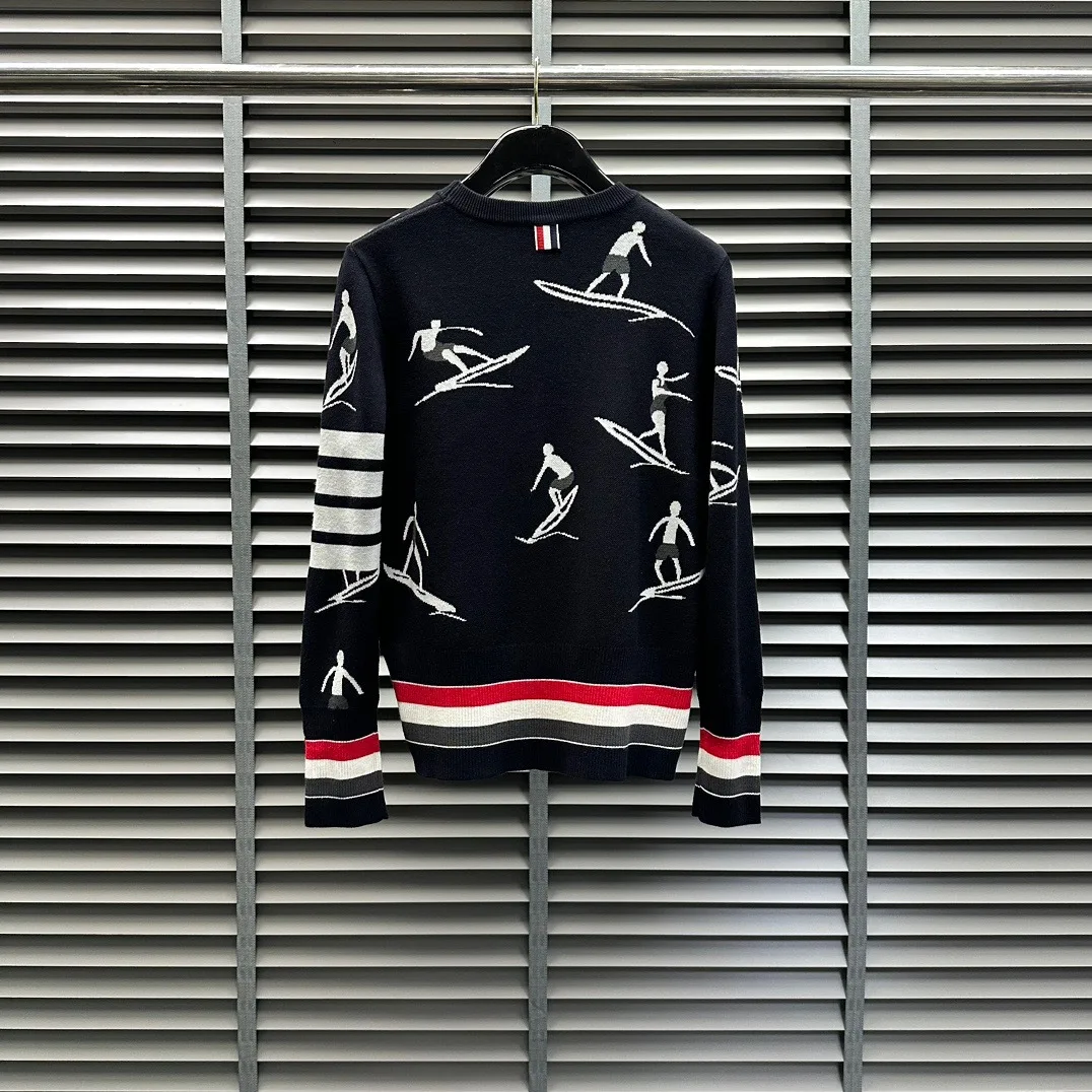 빈티지 트렌드 커플 자카드 스웨터 곤색