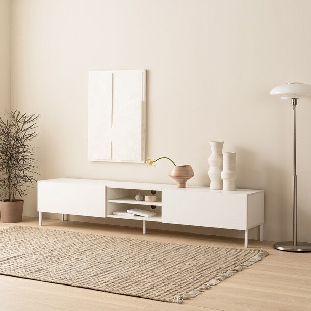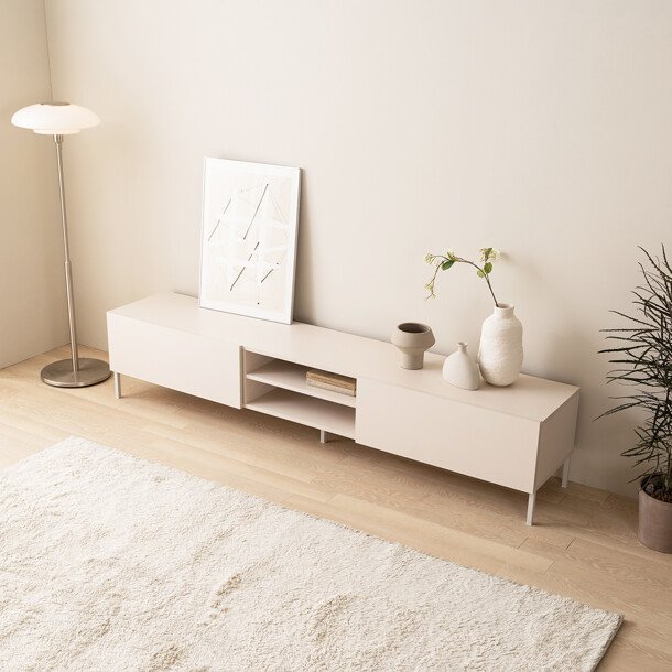 출시 이후 고객의 꾸준한 사랑을 받고 있는 무드 모던 거실장 시리즈입니다. 대형 TV도 여유롭게 올라가며 지저분한 전선이나 콘솔기기들을 깔끔하게 수납할 수 있습니다.