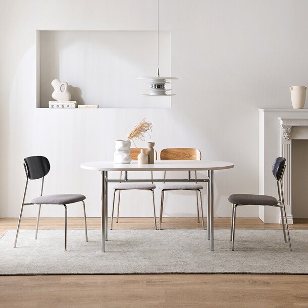 아르카 식탁은 따듯하고 섬세한 느낌의 화이트 다리와, 트렌디하고 세련된 느낌의 크롬 다리 두 가지 컬러 옵션이 있어 취향에 맞게 상판과 조합하여 고를 수 있습니다.