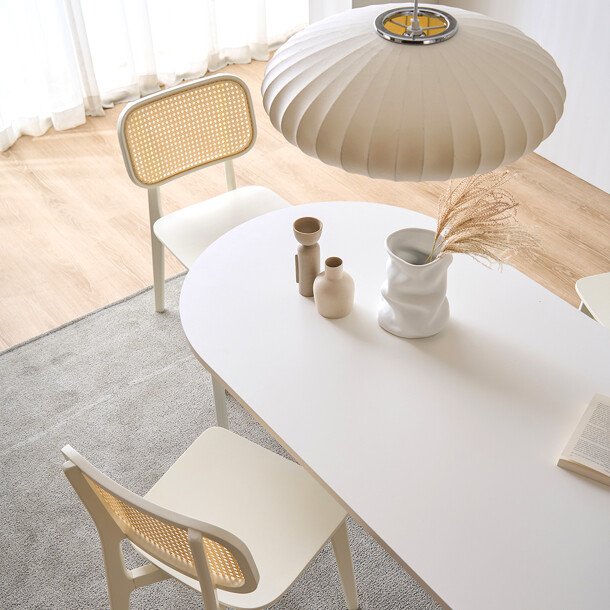 2인~4인에 적합한 1400사이즈로 나만의 홈카페를 꾸미거나, 4인~최대 6인까지 가능한 1600 사이즈로 홈파티를 즐겨보세요. 컴팩트한 사이즈와 군더더기 없는 디자인은 식탁 겸 책상으로도 활용이 가능합니다. 나만의 효율적인 레이어드 룸을 구성해 보세요!