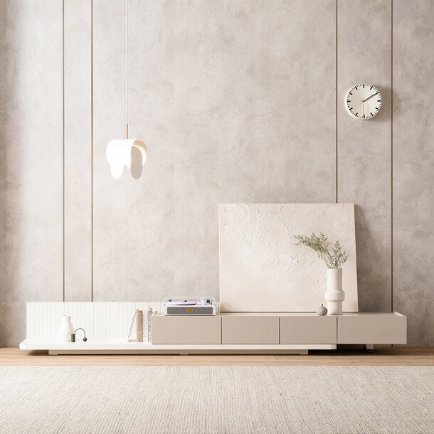 – 거실장을 이동하며 자유롭게 길이를 조절할 수 있습니다. – 길이가 변하면서 생기는 공간에 보다 많은 물건을 올려 놓을 수 있을 뿐만 아니라 새로운 분위기를 만들 수 있습니다. – 보조다리를 제거하여 가운데 뿐만 아니라 양쪽으로 확장 가능합니다.