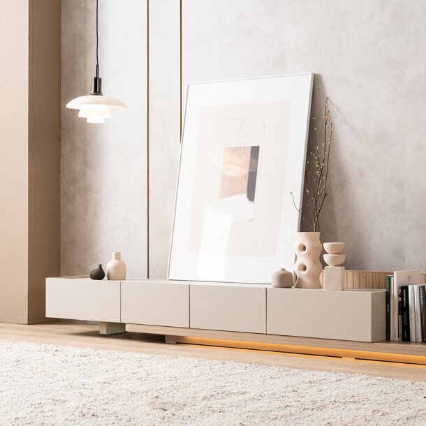 다변하는 라이프스타일에 맞춰 변화가 가능한 거실장입니다. 미니멀하게 시작한 신혼 초와 달리 취미 생활을 위한 TV 옆 스피커, 반려 식물 등이 더해지면서 공간은 점차 나의 취향과 개성에 맞춰 변모하죠. 디바인은 자유롭게 길이 조절이 가능한 익스텐션형 거실장입니다. 확장형으로 사용하여 화분을 둘 수도 있고, 미니멀 인테리어에 맞춰 콤팩트하게 사용도 가능하죠. 디바인은 일상 속 크고 작은 변화들을 유연하게 담아냅니다.