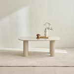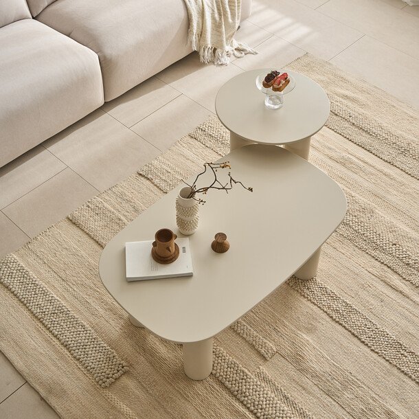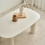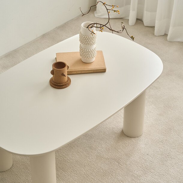라운드가 강조된 직사각형태로 디자인된 티테이블 입니다. 페블처럼 전체적으로 곡선이 강조된 형태와 도장마감으로 깨끗한 표면이 어떤 인테리어 스타일에도 잘 어울립니다.