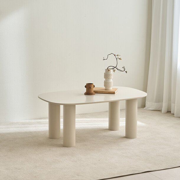볼드한 원기둥 형태의 다리을 적용하여 시각적으로 안정감을 제공합니다. 상판을 전체적으로 단단하게 받쳐주며, 견고하고 균형잡힌 느낌을 강조합니다. 부드러운 원형 곡선은 형태의 단단함과 대조를 이루며, 딱딱하지 않고 친근하고 부드러운 느낌을 더해줍니다. *마루지킴이 스티커가 동봉되어 바닥 긁힘을 방지하고 안정감있는 사용성을 제공합니다.