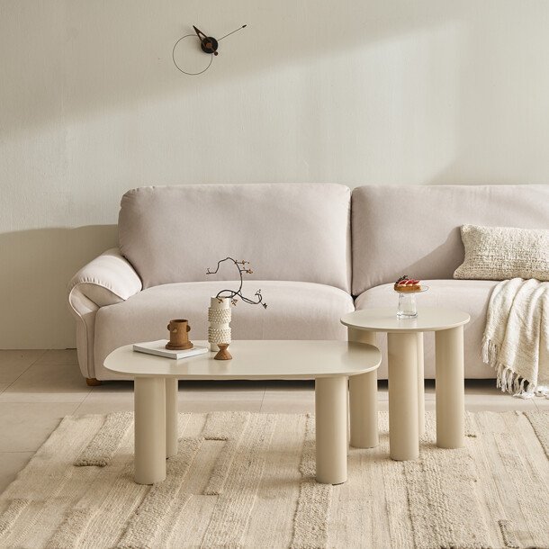 티테이블과 사이드테이블을 함께 배치하여 다양하게 연출 및 활용이 가능합니다. 티테이블과 사이드테이블을 함께 레이어드하여 사용하거나, 티테이블을 소파 앞쪽에 사이드테이블을 소파 측변에 배치하여 필요에 따라 공간을 연출 가능하고 컬러의 통일성을 느낄 수 있습니다.