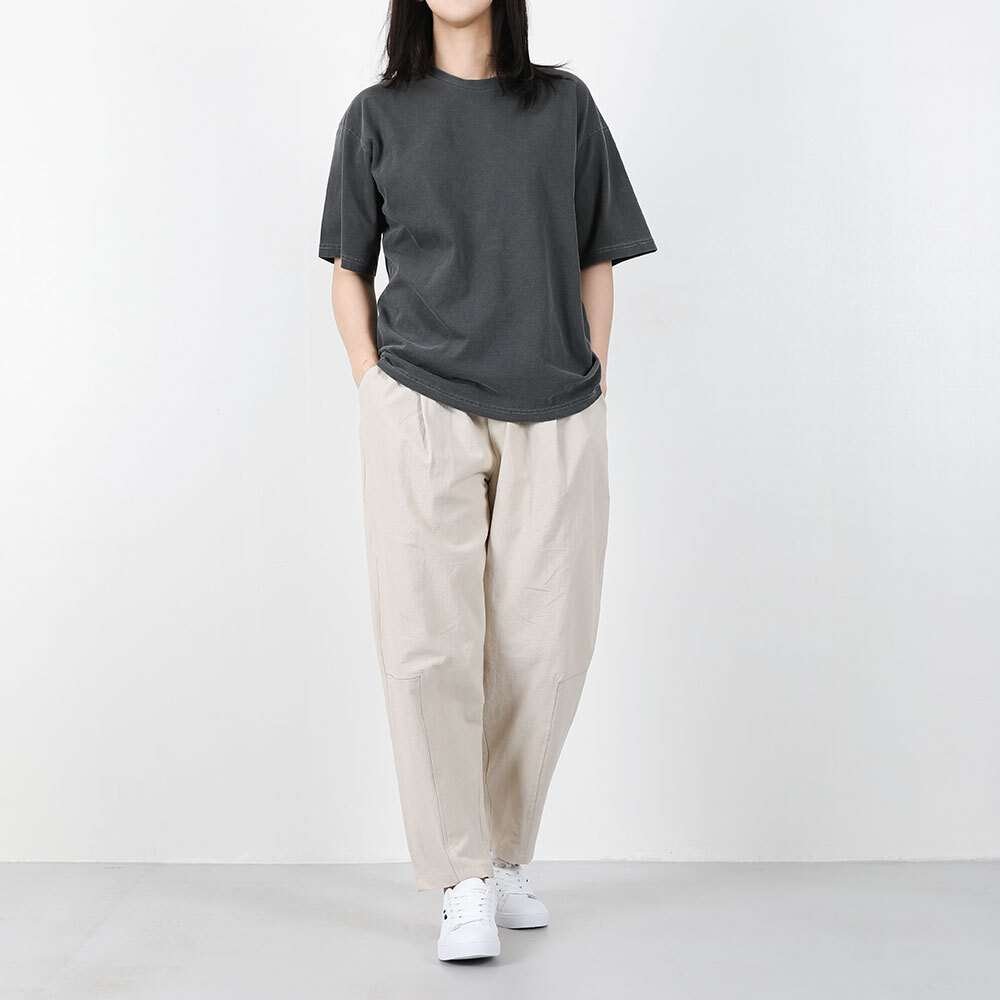 여자 오버핏 린넨크롭와이드 테이퍼드 린넨팬츠