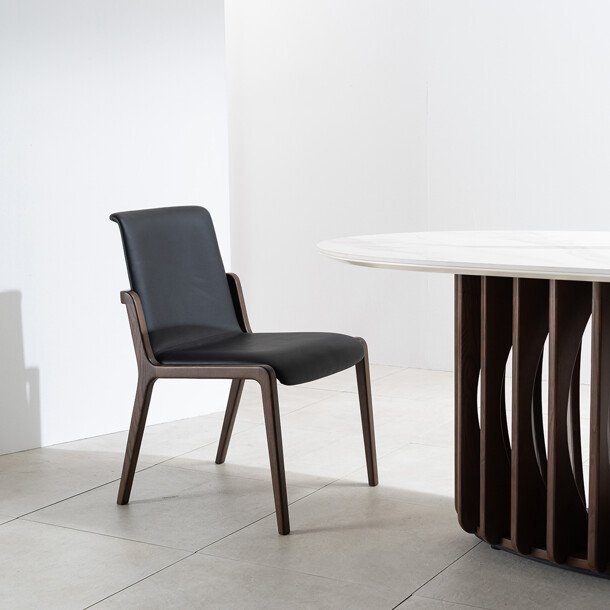오브라(Obra)는 포르투갈어로 공작품, 건축, 건축물이라는 뜻을 가지고 있습니다. 흔히들 의자를 ‘작은 건축물’로 부릅니다. 오브라체어는 건축에서 영감받은 로톤도(Rotondo : 돔이 있는 원형 건축) 페데스탈 식탁과 함께 매칭되는 의자로 건축에서 보여지는 간결하고 직선적인 요소를 목대 프레임에 담았습니다.