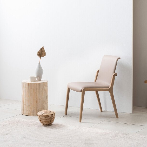 오브라는 의자의 구조감이 돋보이는 다이닝 체어입니다. 수직으로 시원하게 뻗은 다리는 건축의 직선적 구조감을 연상케 하고, 또 목재의 자연스러운 결과 색감도 풍부하게 드러냅니다. 반대로 등부터 이어지는 좌방석은 몸의 곡선을 닮은 부드러운 선을 그립니다. 특히 무릎이 맞닿는 하단까지 라운드 처리함으로써 신체 모든 부위를 편하게 감싸줍니다. 모던 건축같은 세련미를 느끼고 싶다면 ‘시 트렌츠 소프트 샌드’를, 중후함을 바란다면 ‘바이퍼피쉬 블랙’색상을 추천합니다. 잘 지어진 건축처럼 견고하게 짜여진 다이닝 체어 오브라로 주방의 완성도를 높여보세요.
