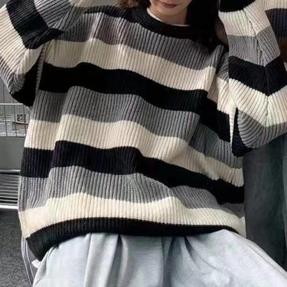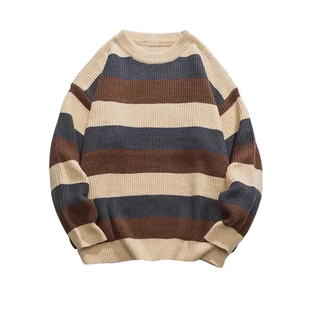 클래식 스트라이프 체크 캐주얼 니트 스웨터 남녀공용